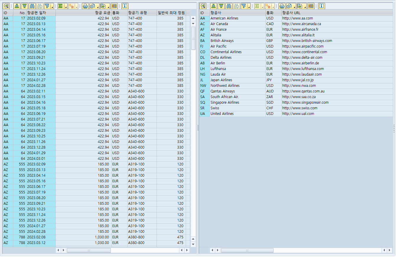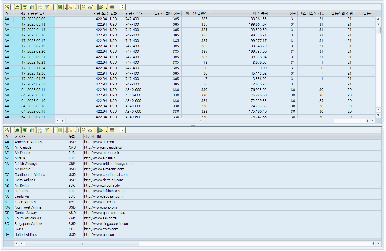 왼쪽에는 SFLIGHT Table을 보여줘야 하기 때문에 왼쪽인 GO_GRID01