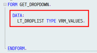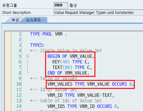 - VRM_VALUES 타입으로 선언한 이유? 나중에 사용할 Function Module과 타입을 맞추기 위해서이다.