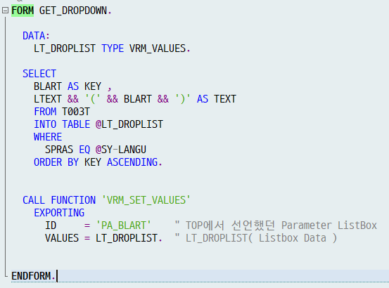 ID = 'PA_BLART' " TOP에서 선언했던 Parameter ListBox "