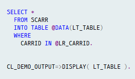 CL_DEMO_OUTPUT=>DISPLAY( LT_FLIGHT ).