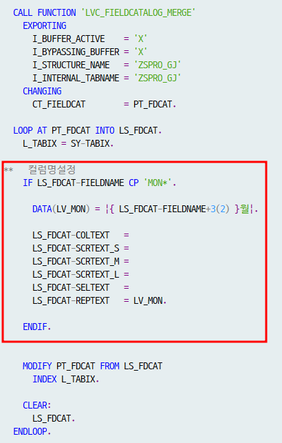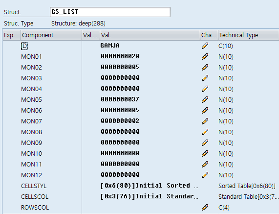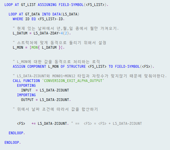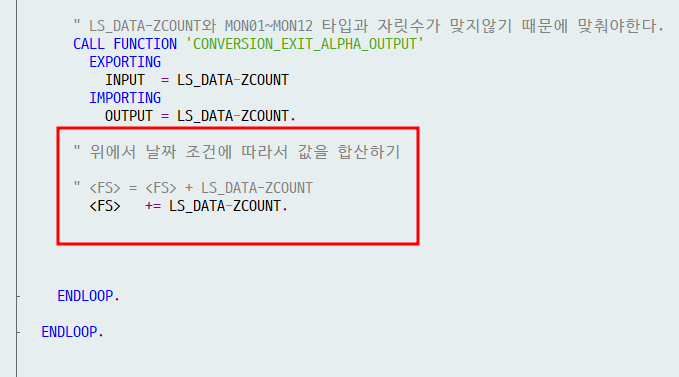 " LS_DATA-ZCOUNT와 MON01~MON12 타입과 자릿수가 맞지않기 때문에 맞춰야한다. "