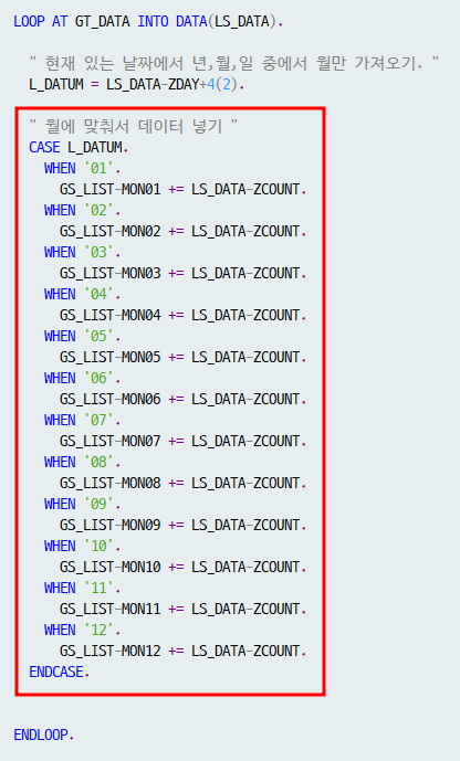 #3. 필드심볼을 사용하지 않았기 때문에 CASE문으로 월 별로 구별한다.