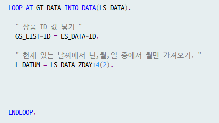# L_DATUM은 LS_DATA-ZDAY+4(2)는 월 단위이기 때문에 월 단위를 가져오는 로직