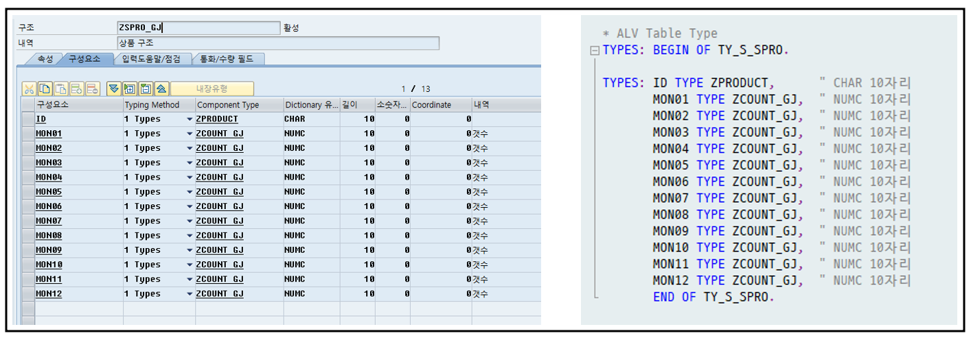 ZSPRO_GJ( ALV Table ) = 세로 테이블 TYPE Structure