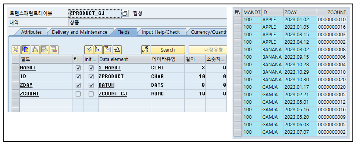 ZPRODUCT_GJ ( DB Table ) = 가로 테이블