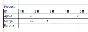 세로 테이블에서 ID를 보면 APPLE, BANANA, GAMJA 총 16개이다.