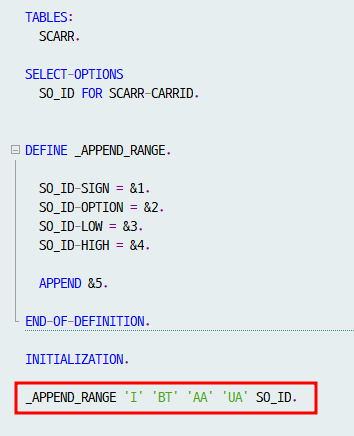 _APPEND_RANGE 'I' 'BT' 'AA' 'UA' SO_ID.