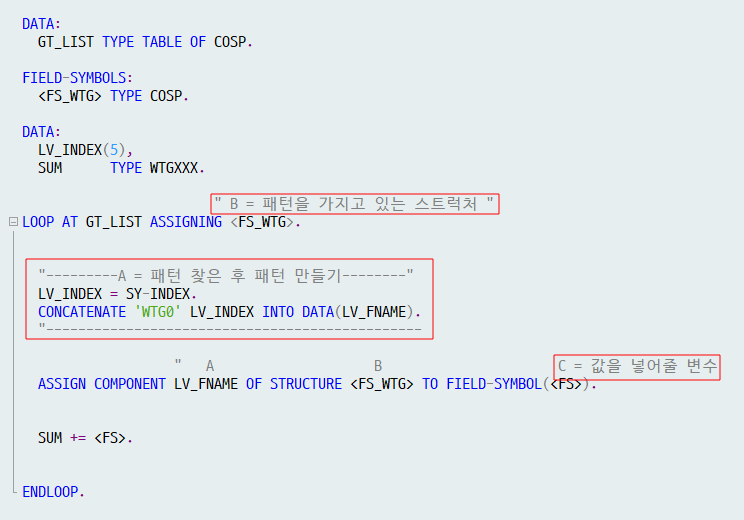 즉, FIELD-SYMBOL( 필드 심볼 )은 동적 사용 할 때 쓰인다.