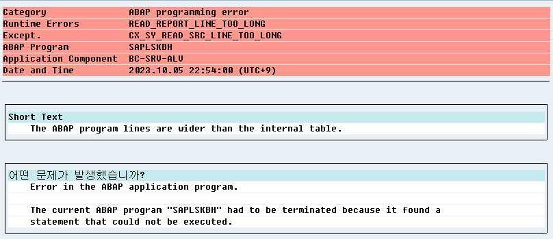 CX_SY_READ_SRC_LINE_TOO_LONG(72자 오류)