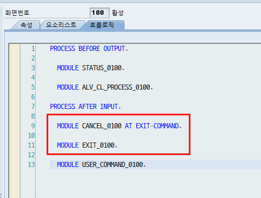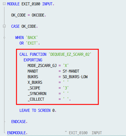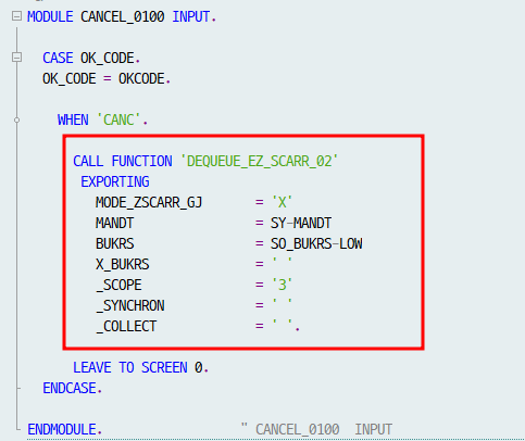 #4. 우선 (MODULE CANCEL_0100 AT EXIT-COMMAND)부터 설정해 보자. ( DEQUEUE_* )