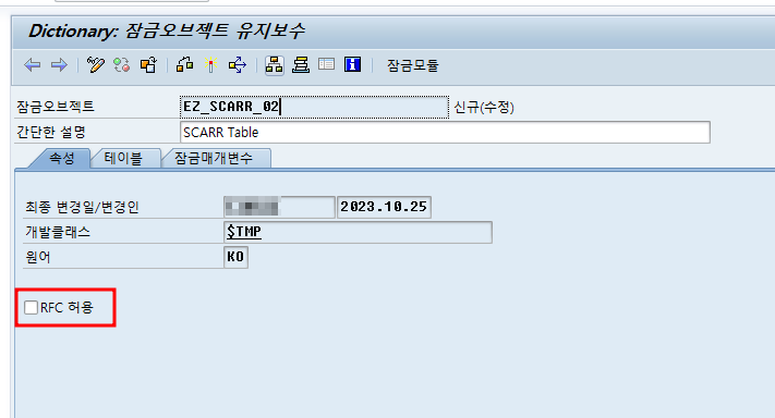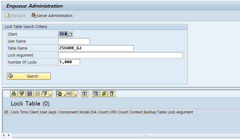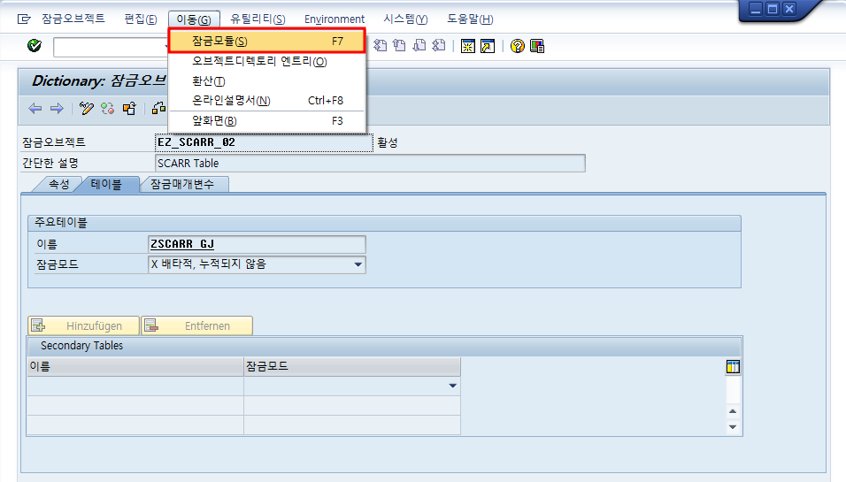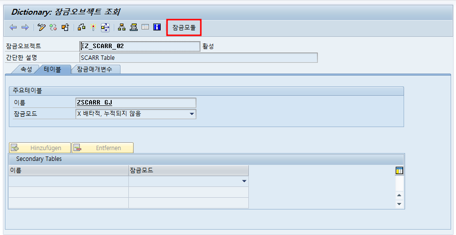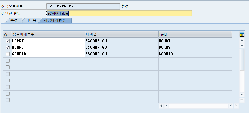 # 여기서는 ZSCARR_GJ Table만 잠금 설정 할 것이니 넘어가겠다.
