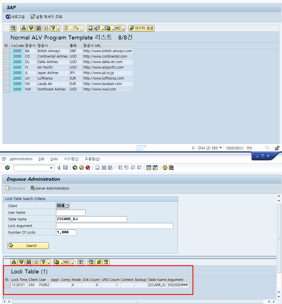 # 잠금 매개변수를 통해서 회사코드에 해당하는 데이터를 잠금 할 것인지, 회사코드와 항공사에 해당하는 데이터를 잠금 할 것 인지 설정하는 공간이다.