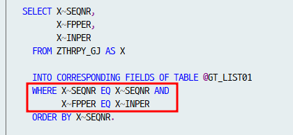 WHERE X~SEQNR EQ X~SEQNR AND