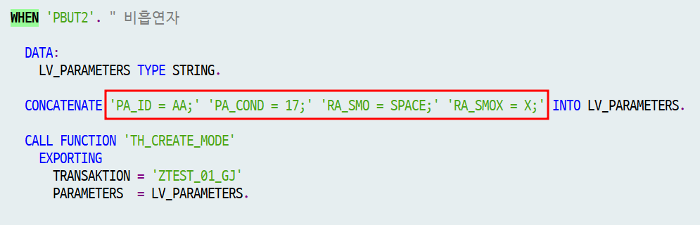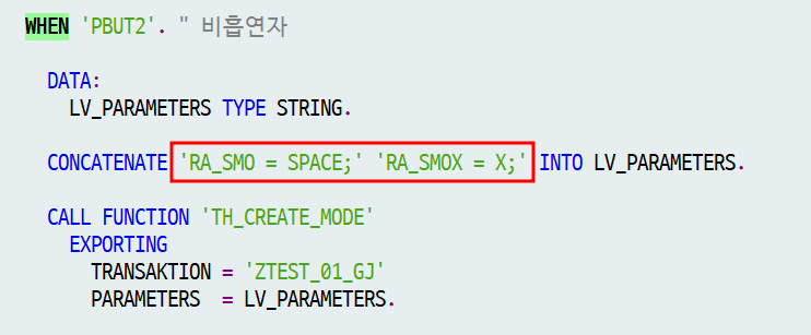 # ZTEST_01_GJ 파라미터 설정을 보면 RA_SMO, RA_SMOX 선언이 되어있다.