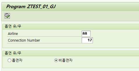 # ZTEST_00_GJ 프로그램에서 비흡연자를 누르면 새 창으로 ZTEST_01_GJ 프로그램에서 비흡연자가 찍혀서 나오게 하는 프로그램을 만들어보자.