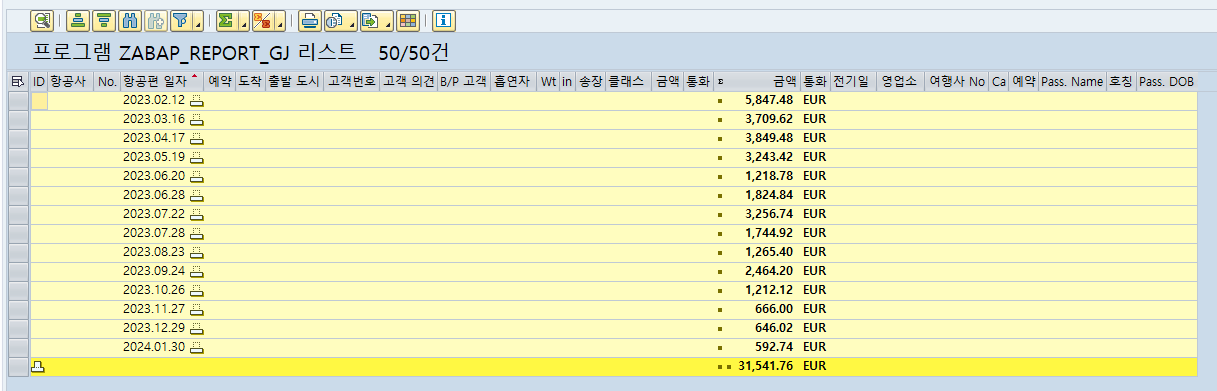 # 앞에서 항공편 일자에 대한 기준을 잡았기 때문에 이제 남은 금액에 대한 SUM을 해줘야 한다.