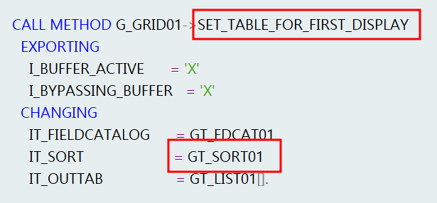 SORT 값은 다음 "SET_TABLE_FOR_FIRST_DISPLAY" 에 넣는다.