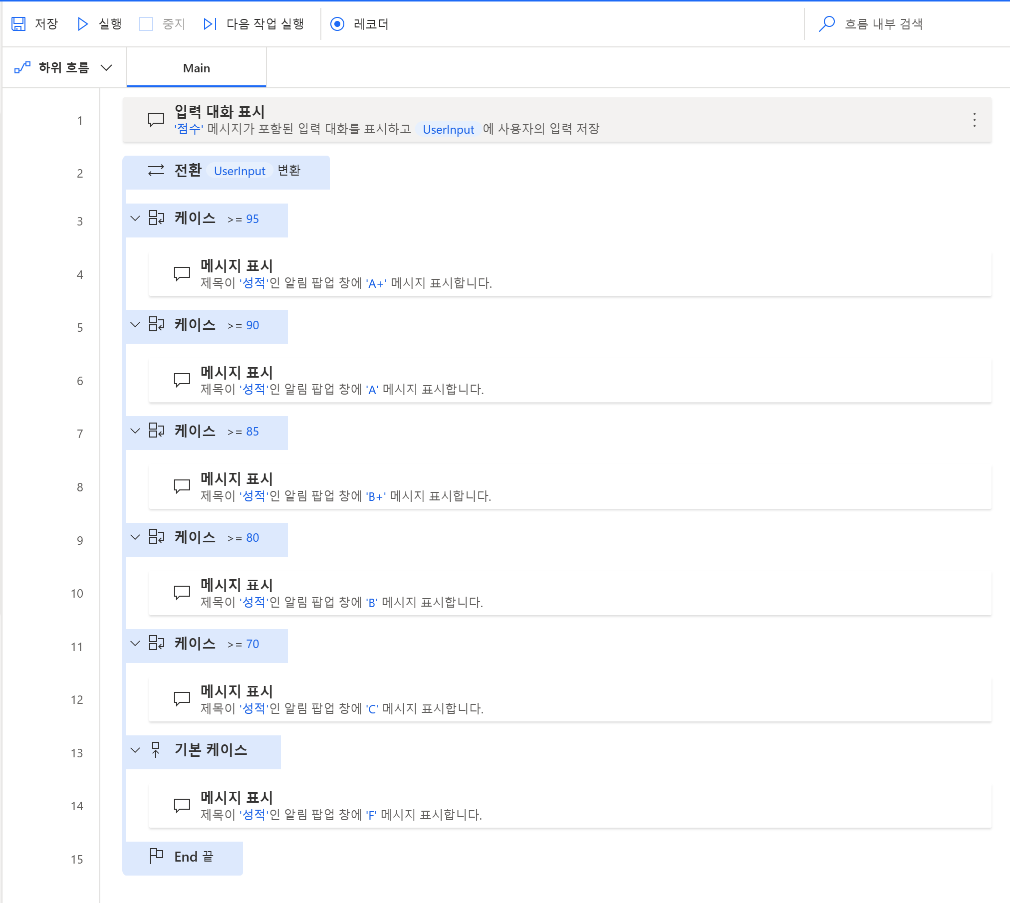 사용자가 성적을 입력하면 A+, A, B+, B, C , F 인지 확인하는 흐름을 만들 것이다.