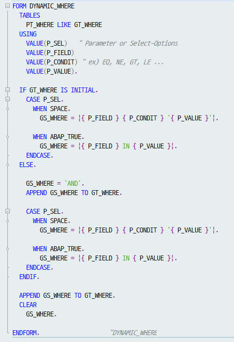 # PARAMETER와 SELECT-OPTIONS에 대한 동적 조건을 만들어보겠다.