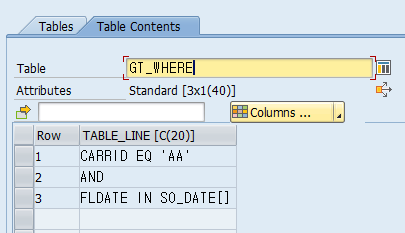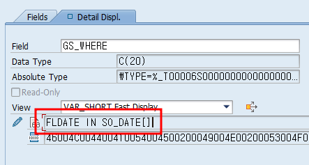 # 02. 동적 조건을 설정하기 위해서는 다음과 같이 [ Internal Table ] or [ Structure ] 설정해야 한다.