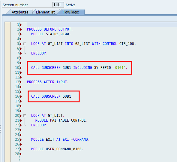 CALL SUBSCREEN SUB1 INCLUDING SY-REPID '0101'.