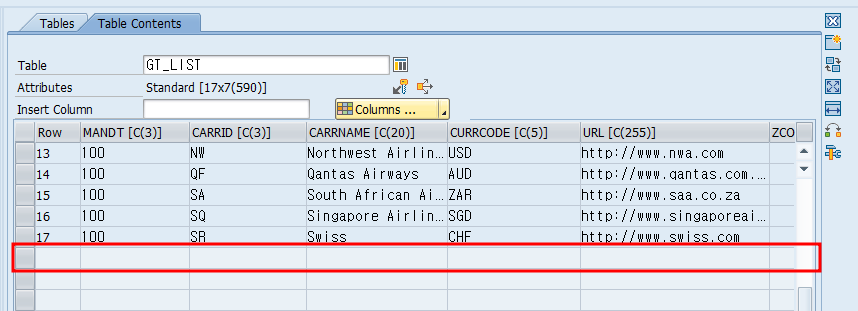 # Append Row 일 경우 ( Internal Table 맨 하단 Row 값 넣기 )