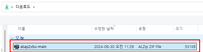 #05. 다운로드하였던 abap2xlsx.zip를 선택해서 클릭하면?