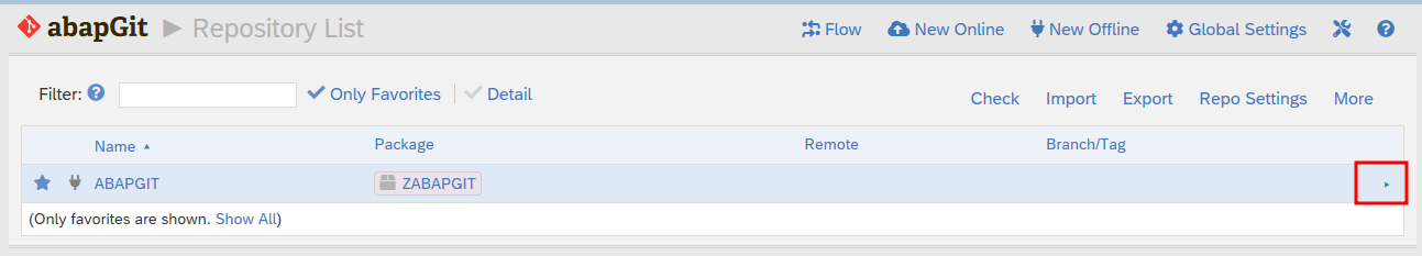#03. 설치했던 abapGit 프로그램을 실행시켜서 ABAPGIT 화살표를 클릭하자.