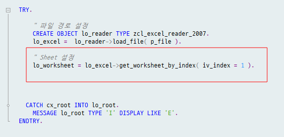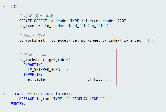 여기서 사용한 ( LV_SKIPPED_ROWS )은 상단에 있는 Title를 건너뛰고 읽겠다고 보면 될 것 같다.