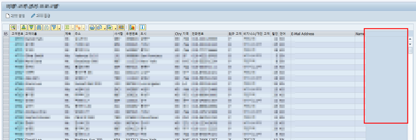 # 02. 다음 ALV에서 빈 공간(빨간 상자)에 [ SHIFT + 오른쪽 클릭 ] X 2 ( 더블클릭 )을 해보자.