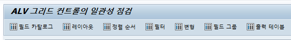 # ALV을 만들고 그릴 때 필드카탈로그, Sort, Filter 등 정확하게 일관되게 동작하는지와 레이아웃 설정이 올바르게 되어있는지 확인할 수 있는 것이 일관성 점검이다.