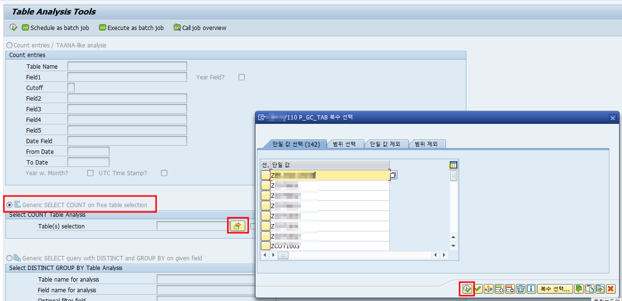 # SAP 테이블의 데이터 개수