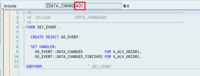 # 02. 앞에서 선언하였던 " GO_EVENT "을 통해서 SET HANDLER을 [ INCLUDE A01 ]에 설정해 보자.
