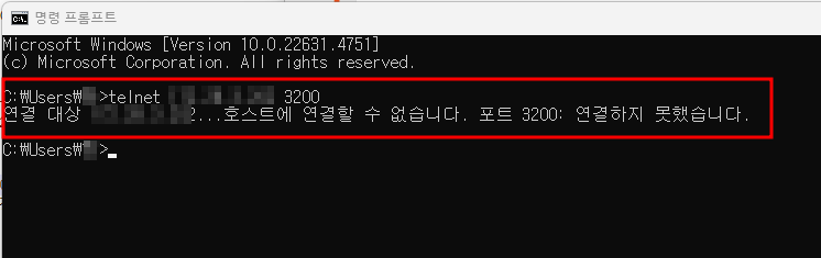 # 02. [ telnet ]을 적은 뒤 해당 [ SAP 서버 IP ]와 [ PORT ]를 적어보자.