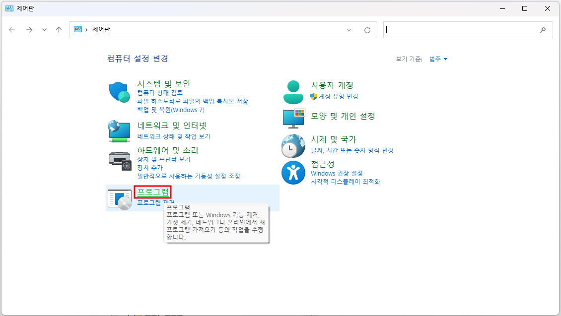 # 01. [ 제어판 ] -> [ 프로그램 ]을 클릭해 보자.