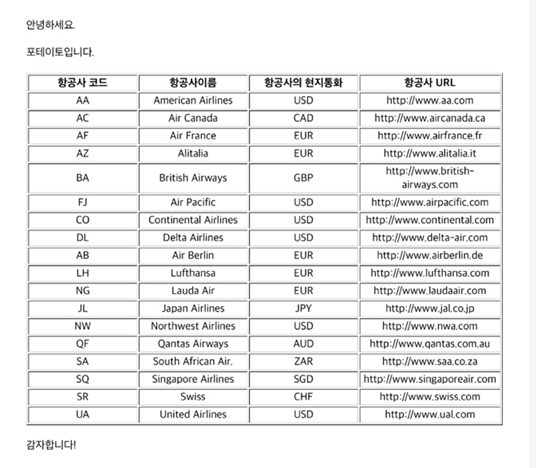 '<th width="150">항공사의 현지통화</th>'
