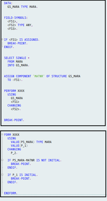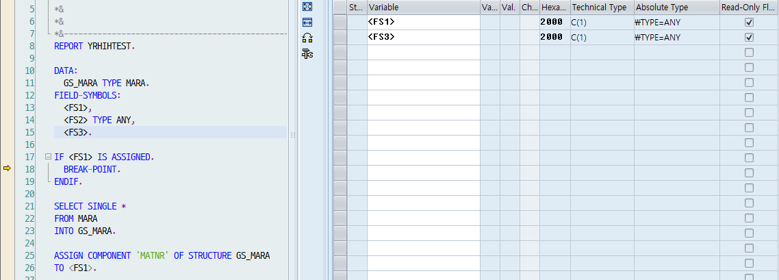 - <FS2>는 TYPE ANY을 지정해주었기 때문에 ASSIGN 구문을 타지 않는 이상 데이터를 확인할 수 없다.