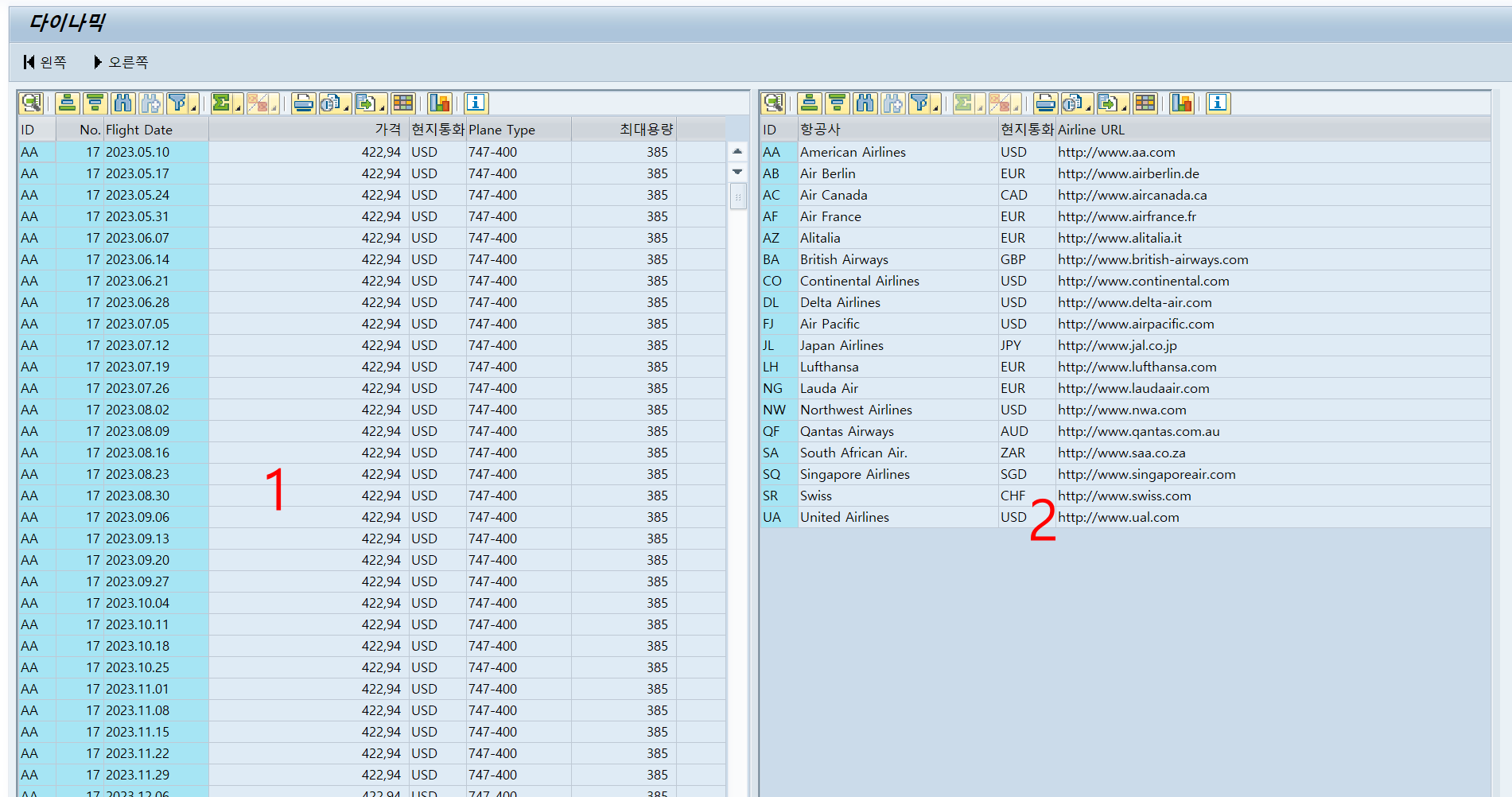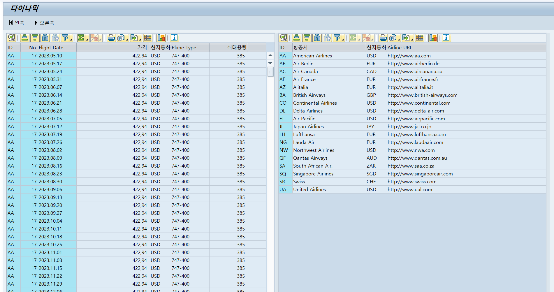 # 03. [ 오른쪽 ] 버튼을 눌렀을 때 ALV 화면이 오른쪽으로 이동해야 한다. 여기서 중요한 것은 어느 화면을 움직일건지 기준을 정해야 한다.