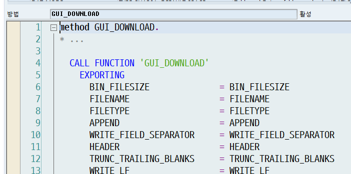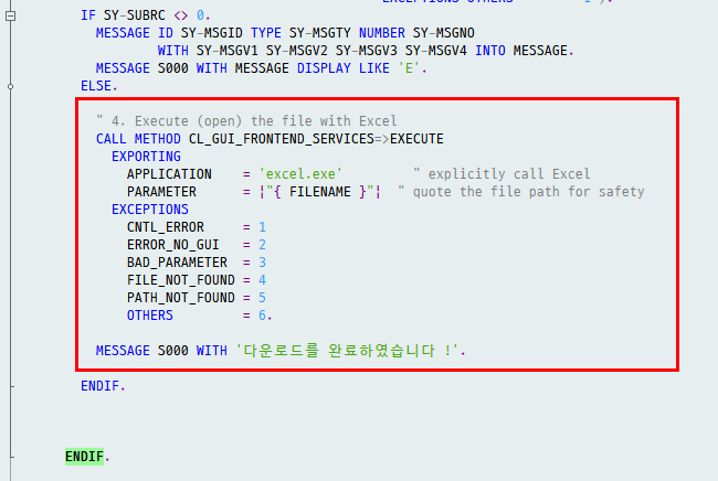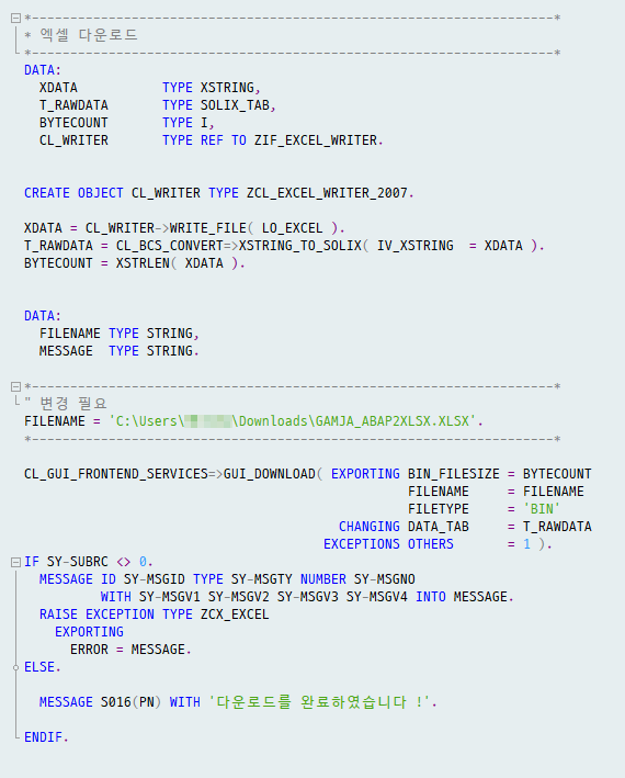 # 01. 여기서는 [ GUI_DOWNLOAD ]을 통해서 앞에서 설정했던 엑셀을 다운로드해 보자.