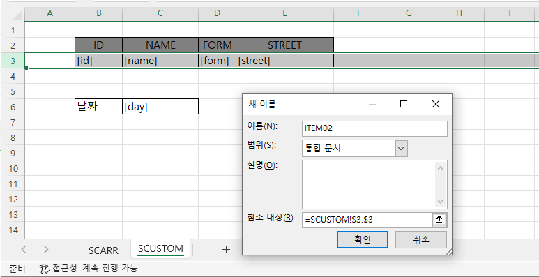 # 03. 그다음에는 [ 상단 ] -> [ 수식 ] -> [ 이름 정의 ]를 클릭해서, [ 이름 ]의 값을 넣고 기억해야 한다.