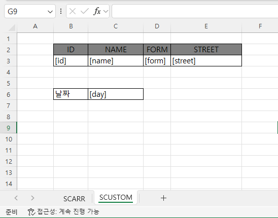 # 우선 엑셀 양식은 다음과 같이 있다고 예를 들어보자.