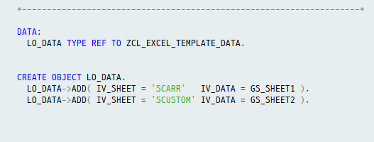 LO_DATA->ADD( IV_SHEET = 'SCARR' IV_DATA = GS_SHEET1 ).