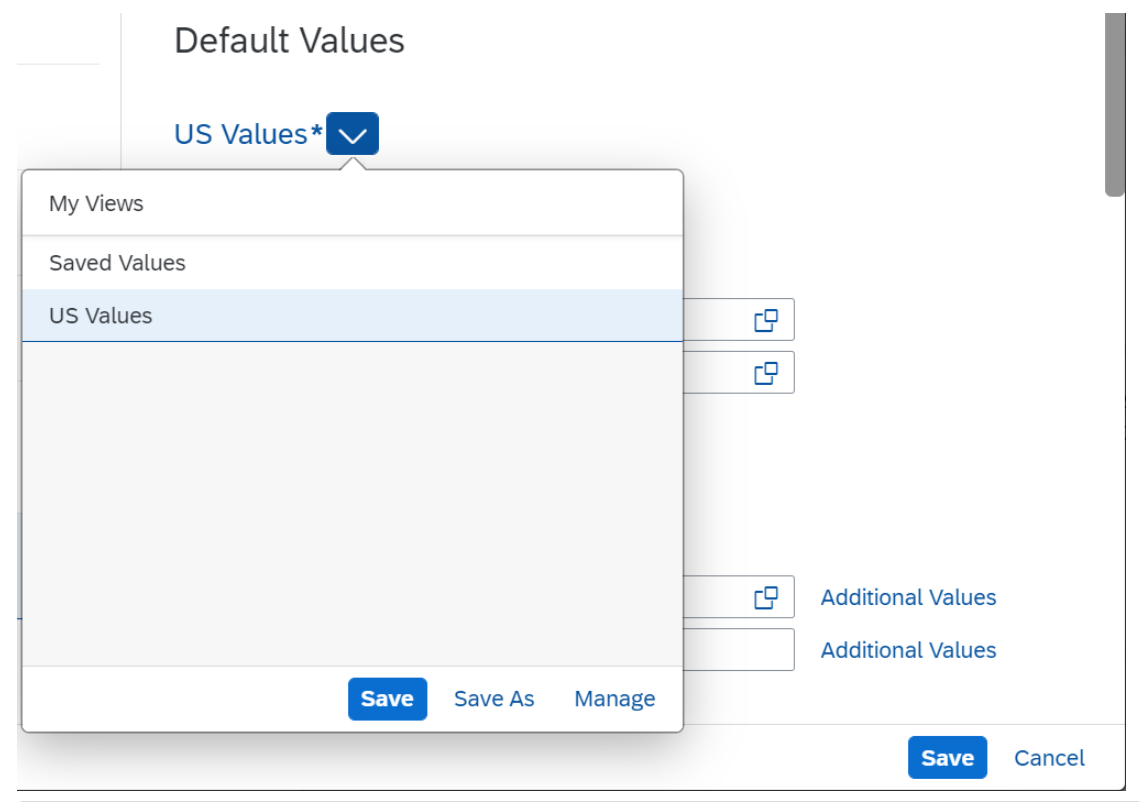 또한, 사용자별로 Default Value을 설정할 수 있기 때문에 [ 세트 ]를 공통으로 하나 만들어서 설정해 주면, 사용자 비즈니스 별로 값이 다르게 설정할 수 있다.
