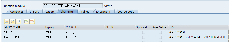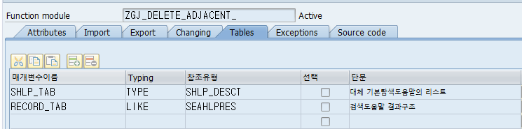 - 우리의 목표는 Function Module을 생성해서 [ 탐색도움말 Exit ]에 생성한 FM을 넣는 것이다.
