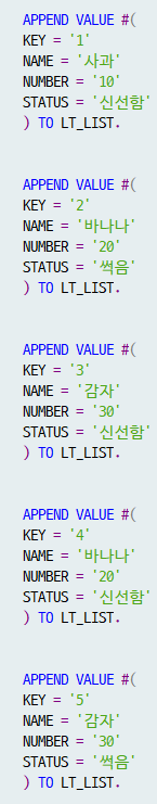 1. LT_LIST을 LOOP문을 돌려주면서 LS_SUM에 옮겨준다.