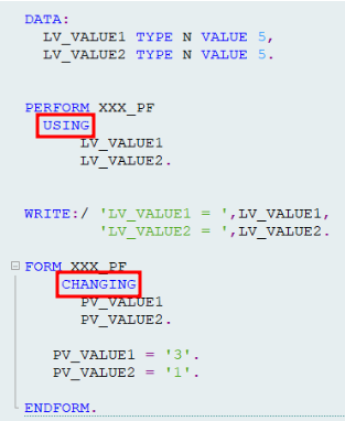 그래서 PERFORM 구문에서 CHANGING으로 변경해도 에러가 나지 않는다.