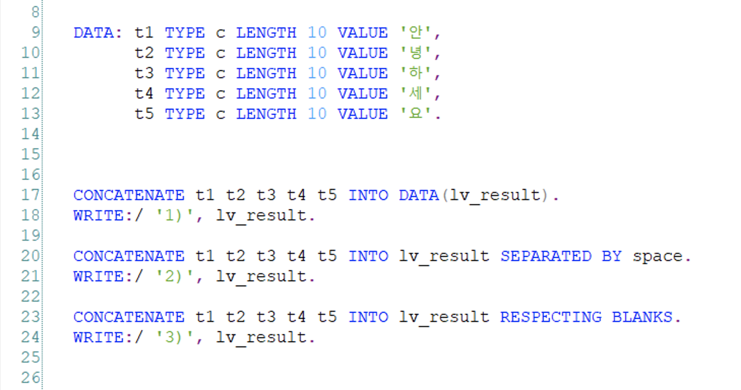 1. 문자를 연결하거나 띄우는 방법