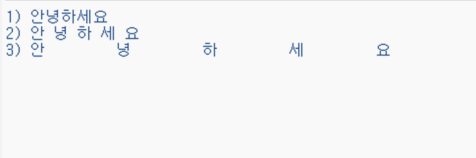 # space 대신 '1'을 넣어주면 "안1녕1하1세1요"가 된다.