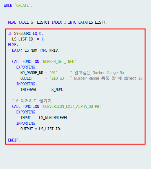 OBJECT = 'ZID_GJ' " Number Range 등록 할 때 Object ID "